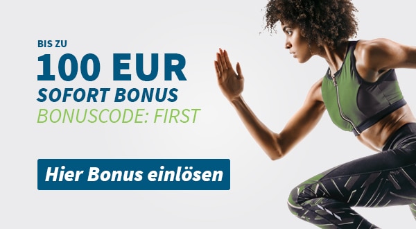 Der Wettbonus muss manuell aktiviert werden. Dazu musst du auf der Website auf “Bonus einlösen” klicken und anschließend mit dem Bonuscode “FIRST” den Bonus aktivieren. Das ganze muss innerhalb der ersten 10 Tage nach der ersten Einzahlung geschehen, danach besteht auf den Wettbonus kein Anspruch mehr.